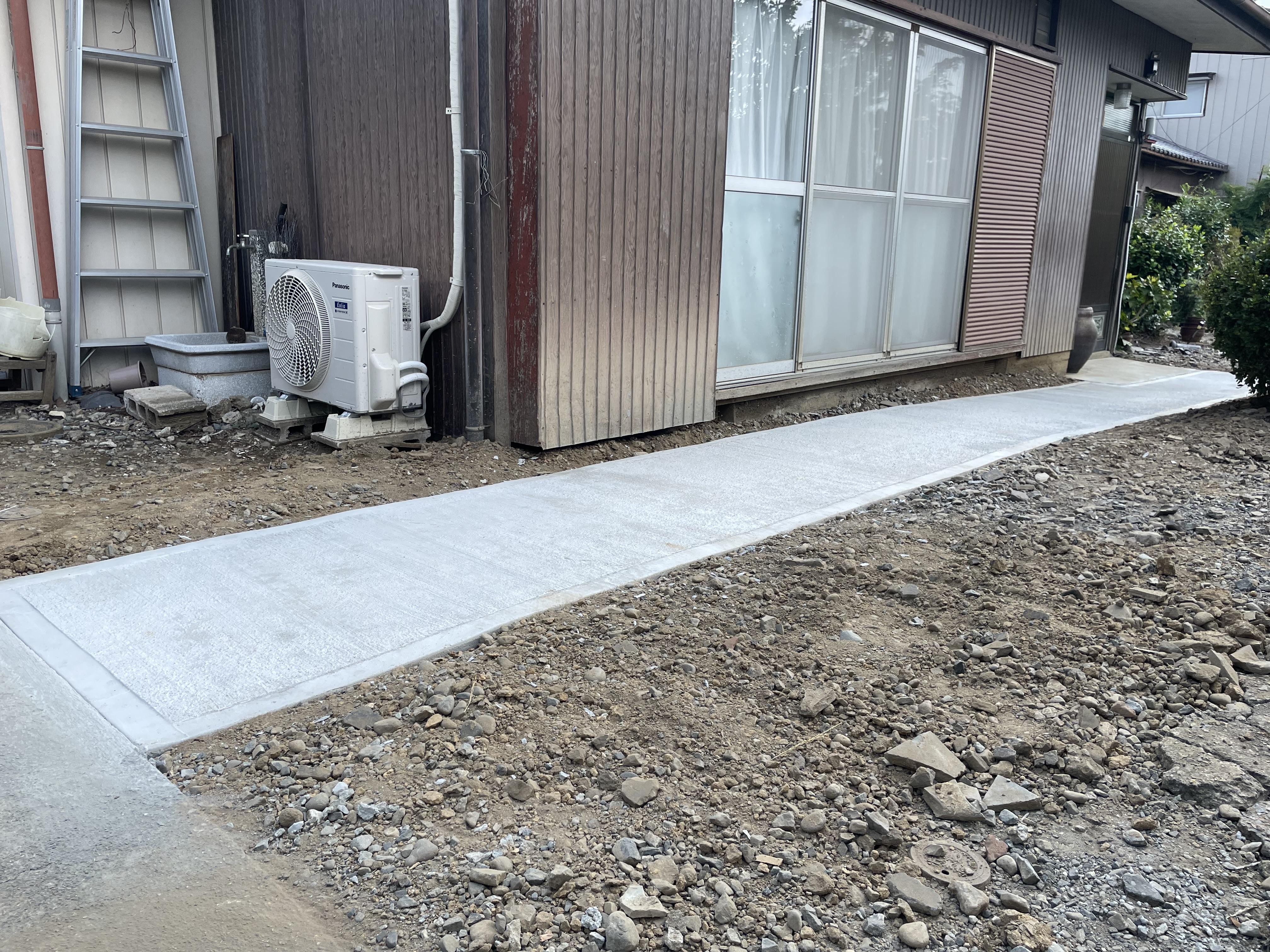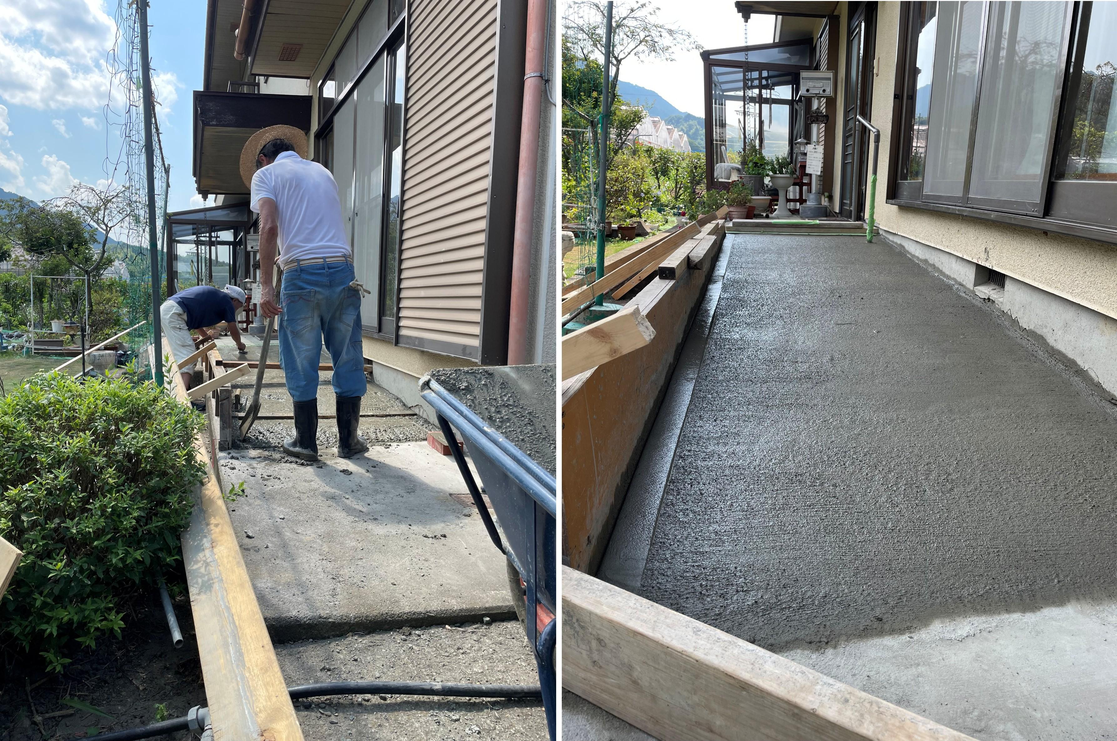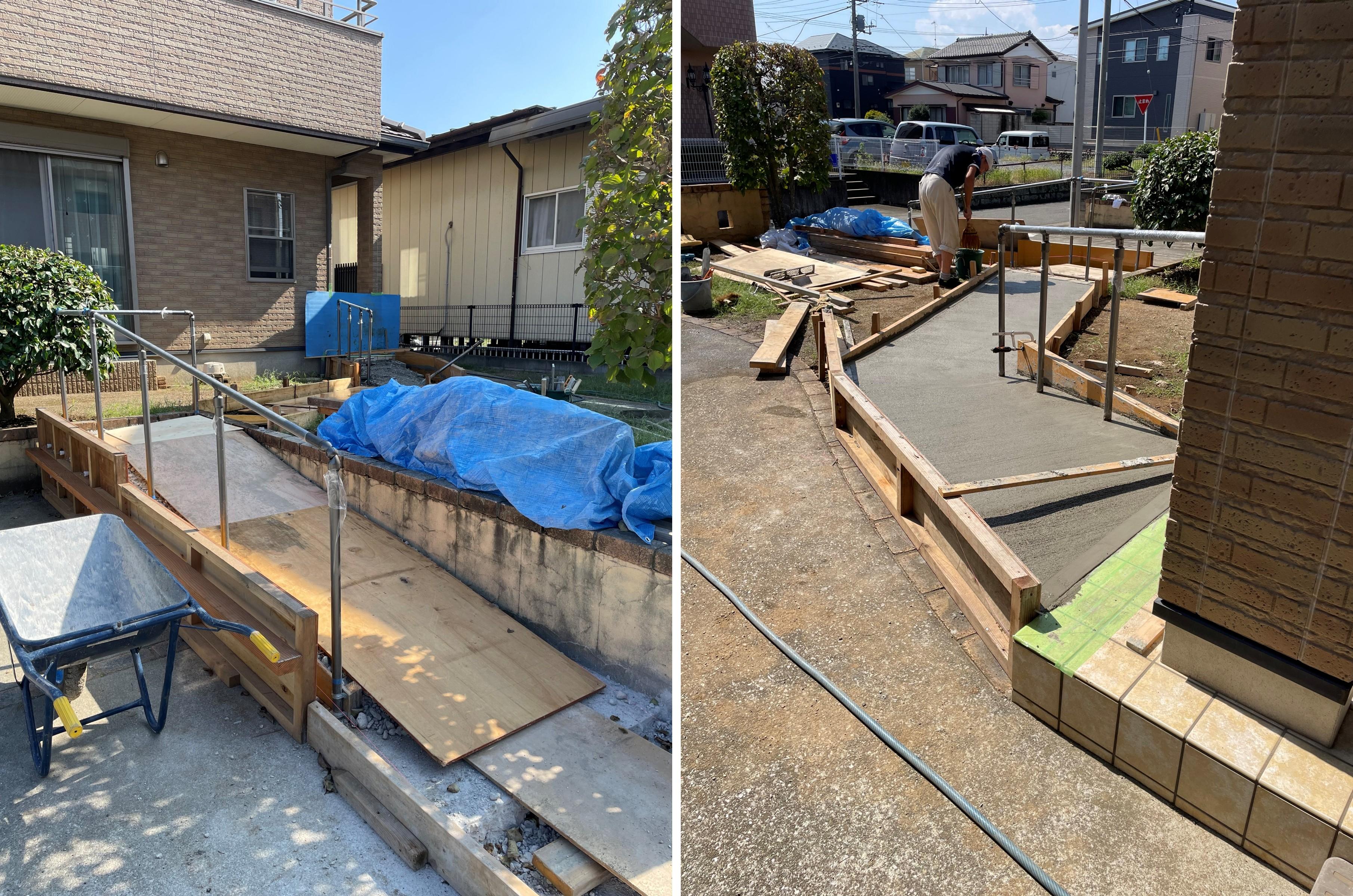 本日の午後は先日工事しました玄関スロープの型枠撤去と仕上げ作業でした。