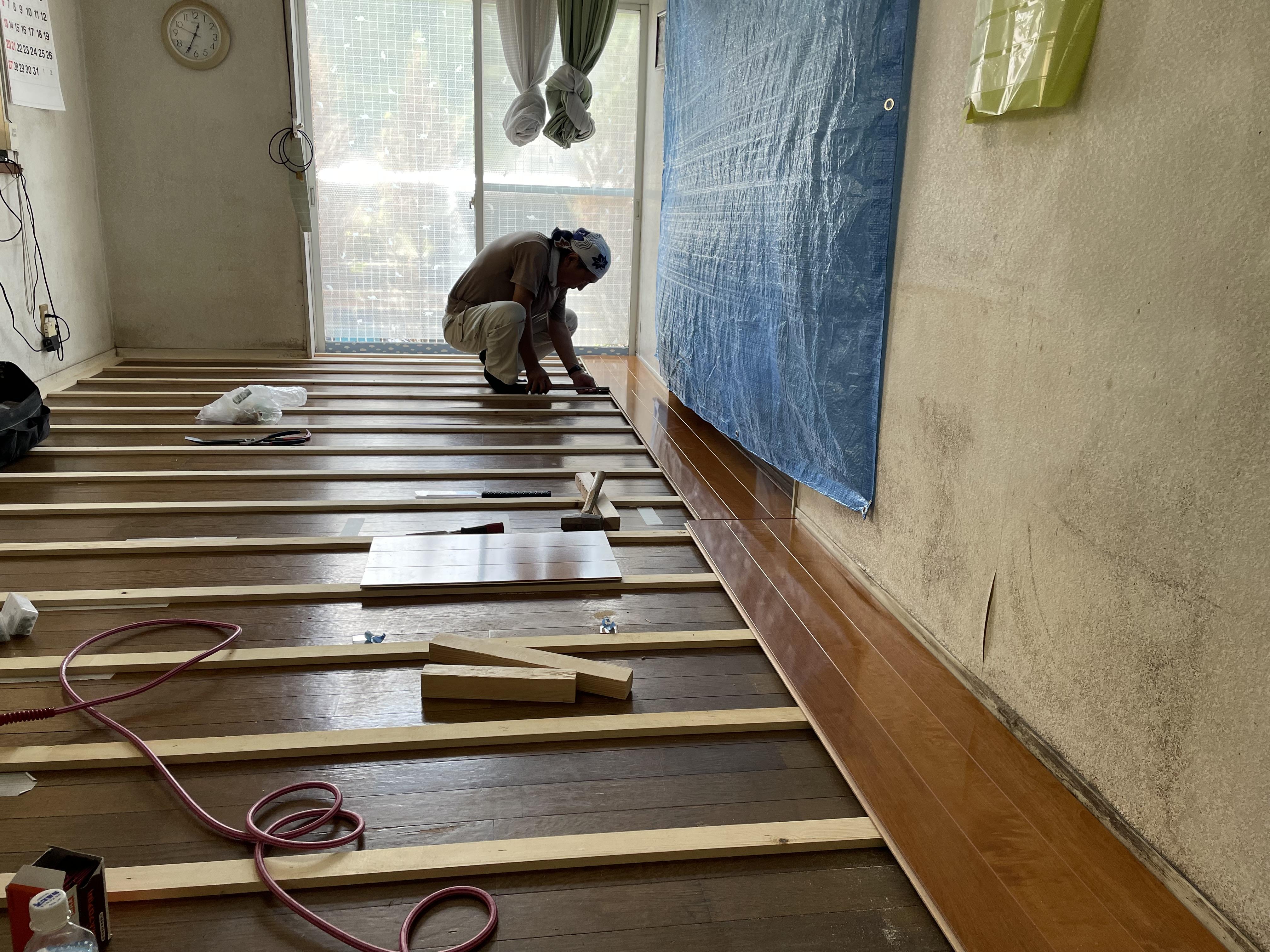 昨日は秋分の日の休日で、だいぶ涼しくなったこともあり、以前の床貼り工事で出た廃棄するはずのフローリングの端材を頂いていたので、自分のDIY作業小屋の床貼りをしました!