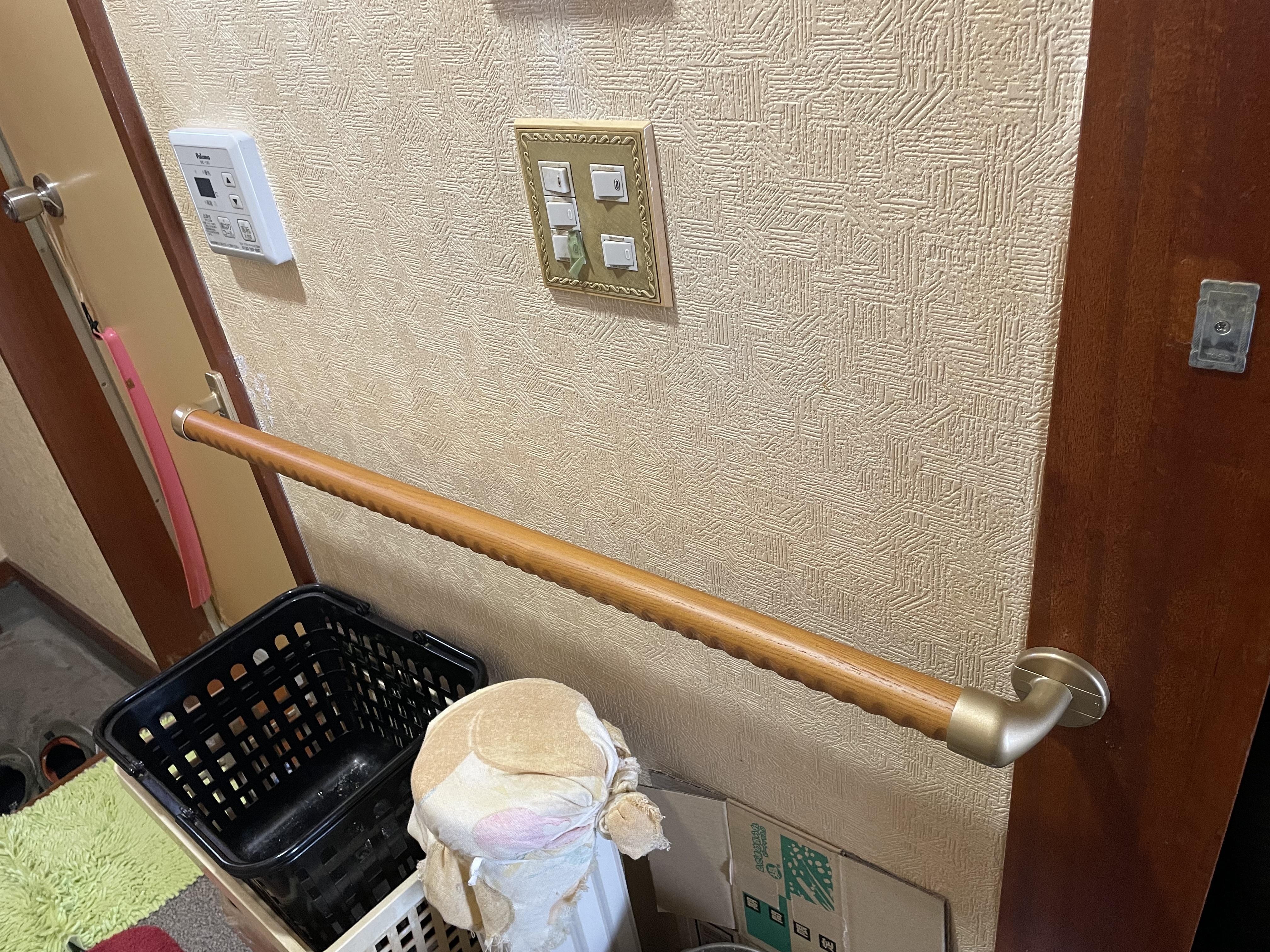 縦手摺、浴室手摺2本の工事でしたが、施主様の確認で大変喜ばれて、何度も何度も手すりを使って「安心してお風呂に入れる…」とお言葉を頂き、本当にこの仕事をやっていて良かったと心の底から感動しました。