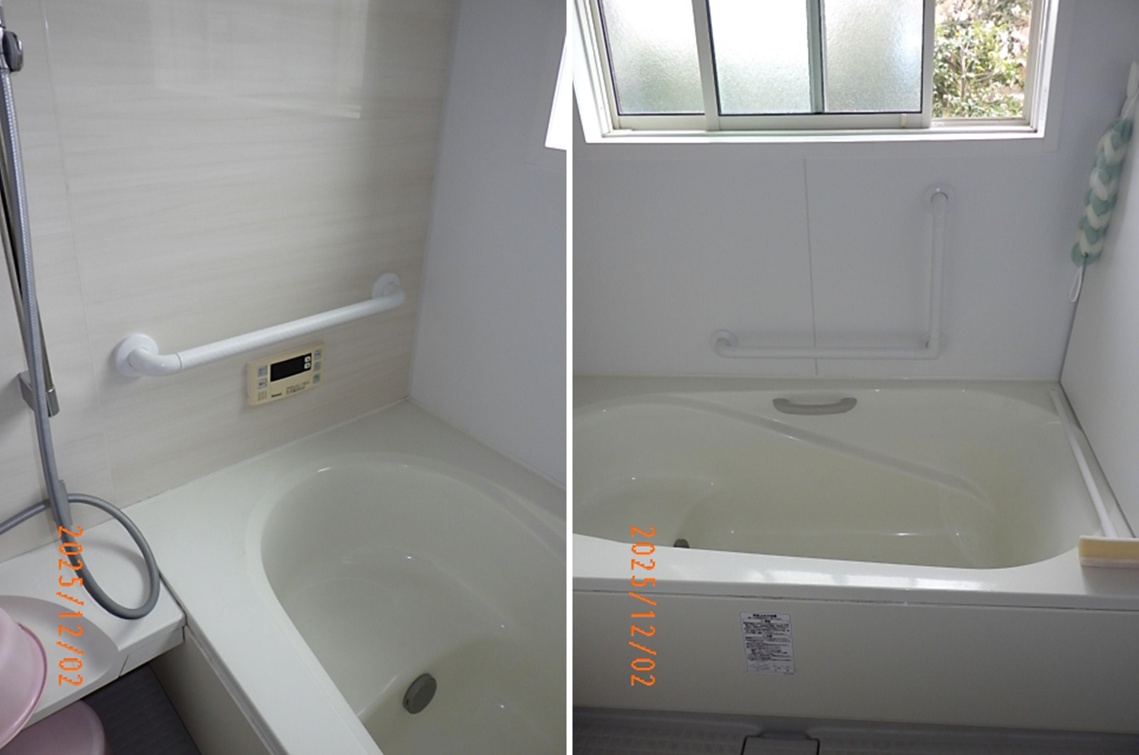 綺麗なお風呂で手すりをつけてより安心だと施主様もお喜びでした!