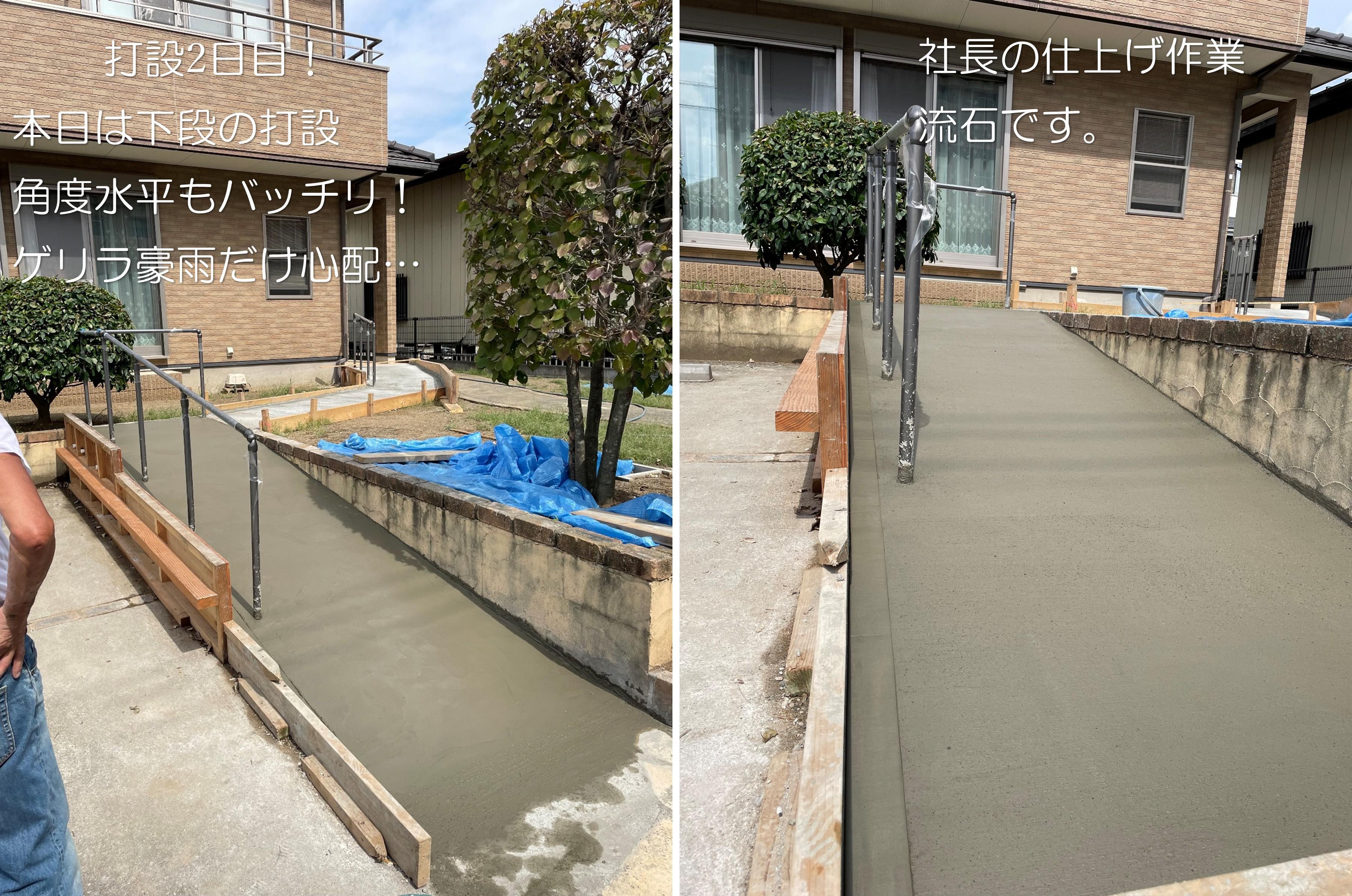 本日第四弾のコンクリートスロープ、枠撤去及び仕上げ作業で出張って参りました。